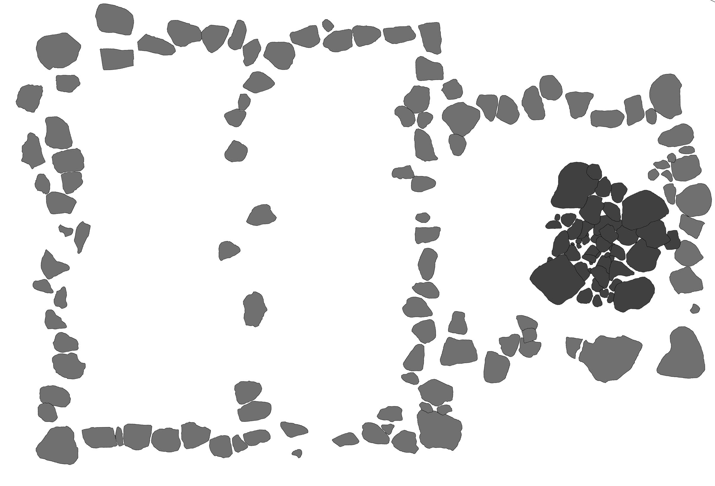 Rakennus on ollut kaksihuoneinen. Sen länsipäässä on ollut isompi kirkkosali ja itäpäässä kuorihuone pappia varten. Kuvassa kivijalka osittain esiin kaivettuna. Kuva: J. Ruohonen.